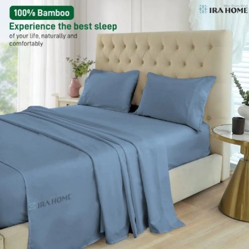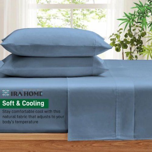 100% Organic Bamboo Mediterranean Blue Three Piece Bed Sheet Set